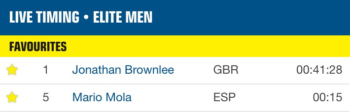 Mario Mola toma el mando del grupo perseguidor aunque Brownlee aumenta su ventaja. El segundo puesto se la juegan Mario Mola y Richard Murray