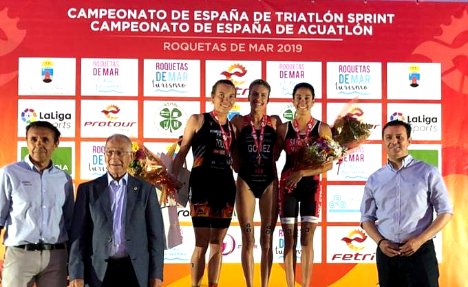 El sábado comenzó con la prueba sprint femenina con Marta Sánchez como protagonista inicial. Tras una buena natación apostó por una escapada en solitario que duró todo el sector ciclista para llegar a la T2 con una ventaja de más de un minuto. Por detrás le perseguía un grupo de diez, sobre el que destacaba -por su forma de correr- Tamara Gómez. Ella fue la primera en distanciarse del grupo para recortar rápidamente la ventaja de Marta. En el kilómetro 2,5 Tamara era ya la primera clasificada y mantenía un ritmo espectacular que le otorgaba en meta el título de Campeona de España de Triatlón Sprint. Un más que merecido triunfo tras tres años de lesión. Por detrás llegaba Xisca Tous en segunda posición y Marta Sánchez lograba mantener el tercer cajón del podio.