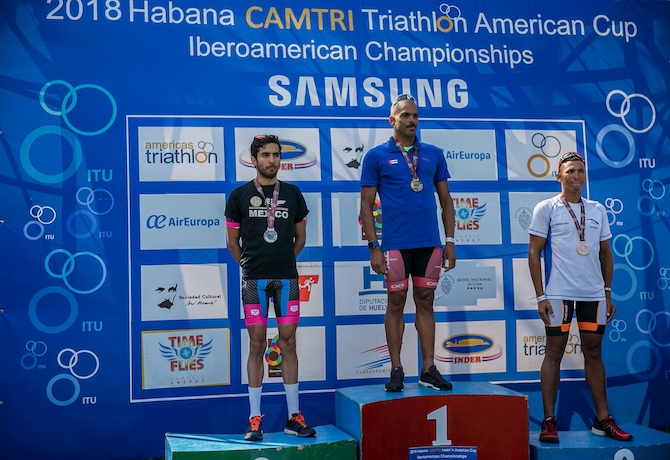 En distancia sprint victoria para el cubano Yoleisy Rodríguez con un registro de 1:01:56, seguido apoco más de un minuto por su compatriota Cristian Carménate y el tercer puesto con 1:03:34 fue para la leyenda española Marcel Zamora que competía en La Habana en su nueva etapa deportiva alejado de la élite del triatlón.