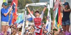 Daniel Ryf llegando a meta en el Mundial IRONMAN en Kona.