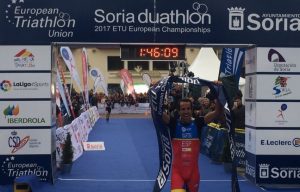 Emilio Martín proclamándose Campeón de Europa de Duatlón en Soria.