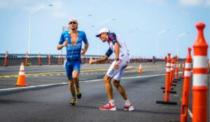 Frodeno animando a su compatriota Patrick Lange en Hawaii.