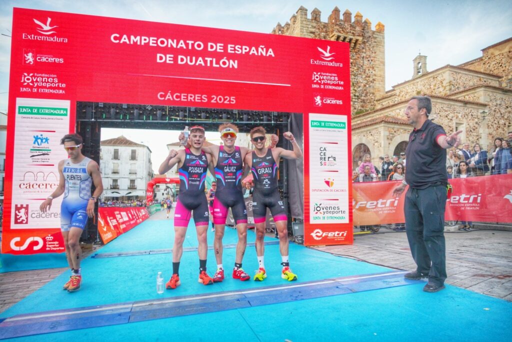 La duatleta revalida su título en Cáceres mientras que la categoría masculina graba por primera vez el nombre de Gálvez.