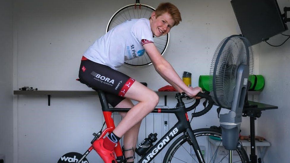 Un ciclista de 13 años de Bristol ha recaudado más de £ 9,000 para un hospicio local al completar un Everesting virtual en Zwift, recibiendo mensajes de apoyo de antemano del poseedor del récord mundial Guinness, Mark Beaumont, y del ganador del Tour de Francia, Geraint Thomas. .
