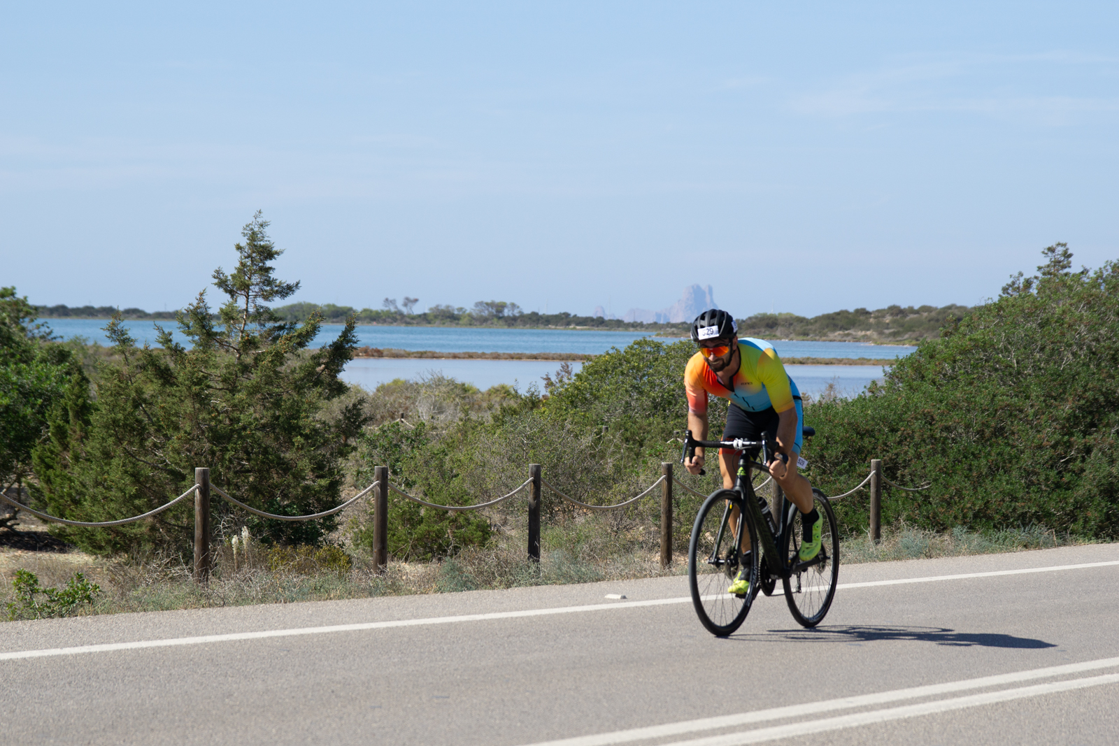 Aunque la isla no tiene aeropuerto, los traslados están bien pensados. Desde Barcelona o Valencia, Trasmed ofrece un 20 % de descuento en billetes de ferry hasta Ibiza, donde podrás enlazar con los fast ferries de Trasmapi, que aplican un 50 % de descuento para triatletas y acompañantes (incluido el vehículo). Las bicis y motos de hasta 125 cc viajan gratis, así que no hay excusa.