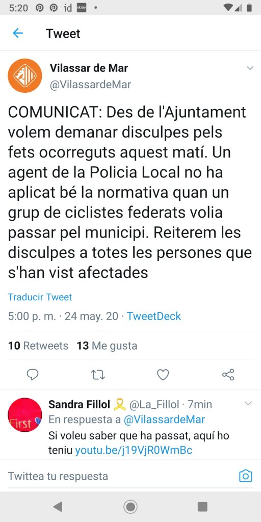 En este caso, un Policía Local, deniega la salida de la localidad catalana de Vilassar de Mar, alegando que tan solo pueden salir los deportistas de alto nivel.