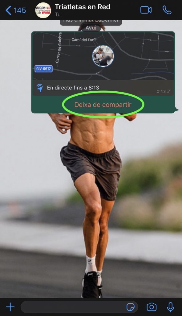 • Desde ese momento, estaremos compartiendo la ubicación. En el caso de estar en un grupo, todos los integrantes de este pueden compartir su geolocalización.