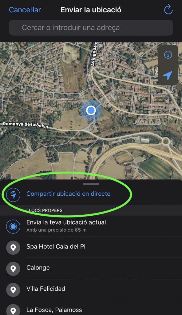 • Nos aparecerá un mapa con nuestra ubicación y tan solo deberemos dar a ”Compartir ubicación en directo”.