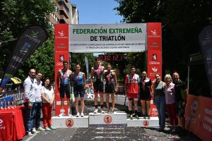 Andueza y Gómez han sido los mejores en un Triatlón Cáceres Ciudad Histórica que ha repartido los billetes para el Campeonato de España. y ha reunido a más de 300 participantes.