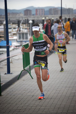 En la T2 todo son buenas caras, la fatiga no ha hecho acto de presencia en sus rostros, pero si en sus piernas; y ellos sin saberlo. A la cabeza de la carrera un “jovenzuelo” Felix Javier Martinez del SD Triatlón Camargo Astillero, desde el principio y hasta el final dominador absoluto a pie.