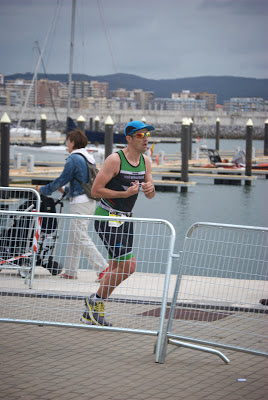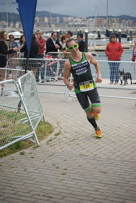 Y Piru, ¿dónde anda Piru? Lo tenemos abandonando. Tras participar la semana anterior en la Kosta Trail, retorna al triatlón. Parece ser que en la bici no lo ha pasado bien, pero ya le tenemos pateando el puerto deportivo de Laredo. Los ánimos que recibe le hacen venirse un poco arriba, aunque la cara denota cansancio.