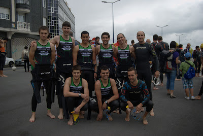 Hasta la villa marinera nos acercamos un nutrido grupo del club dispuesto a darlo todo, como siempre. Y entre ellos, Eva, debutante en triatlón y sin haber nadado nunca con el neopreno una prueba de tanta distancia. Si es que somos así, vamos a las pruebas sin probar material, y luego no hacemos más que decir que eso no hay que hacer….