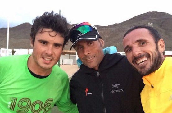 El triatleta gallego Javier Gómez Noya y el atleta Chema Martínez han compartido entrenamiento este sábado en la pista de atletismo de Fuerteventura. Los dos deportistas españoles se encuentran en la isla canaria preparando sus respectivas competiciones. Mientras que Chema Martínez aprovecha para sumar kilómetros sobre las dunas, Gómez Noya ultima sus entrenamientos para arrancar la temporada en el Challenge de Dubai. Ambos han realizado un entrenamiento de carrera a pie por la isla y han compartido unas series de 2.000 metros con mucho viento. Chema Martínez competirá en triatlón el próximo mes de mayo en el Challenge Salou. El atleta madrileño ha publicado un vídeo en su página de Facebook charlando con Gómez Noya.