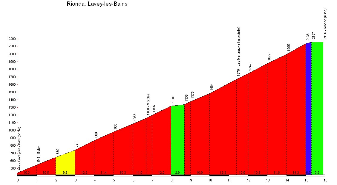 Esta subida, situada en el cantón suizo de Valais (en los Alpes), comienza en el puente sobre el río Ródano, cerca de Lavey-les-Bains. Tiene una longitud de 15,3 km llegando a alcanzar los 2.157 metros y el promedio medio es del 11,2%. A excepción de dos kilómetros (el 8 y el último), nunca estarás subiendo con rampas inferiores al 10%.