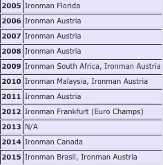 El belga ha ganado un total de 13 Ironman, empezando en 2005 y con un solo año en blanco (por lesión en 2013). Sin duda, destacan sus 7 victorias en Klagenfurt, una prueba muy rápida donde nuestro Ivan Raña también ha realizado grandes actuaciones (ganó en 2014 con su mejor marca personal).