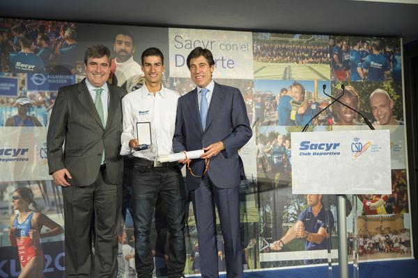 El triatleta balear Mario Mola, recientemente proclamado subcampeón del mundo de las Series Mundiales, recibió este lunes la medalla de bronce de la Real Orden al Mérito Deportivo a manos de Miguel Cardenal, presidente del Consejo Superior de Deportes (CSD). El distintivo le fue concedido en 2014 y se le ha entregado este lunes en el marco de la presentación del Club Deportivo Sacyr, uno de los patrocinadores de Mario Mola. En el acto ha estado acompañado de su pareja y también triatleta, Carolina Routier, así como de su representante y del presidente de la Federación Española de Triatlón, José Hidalgo. Además, han acudido el resto de deportistas que se incluyen en el programa deportivo de Sacyr.