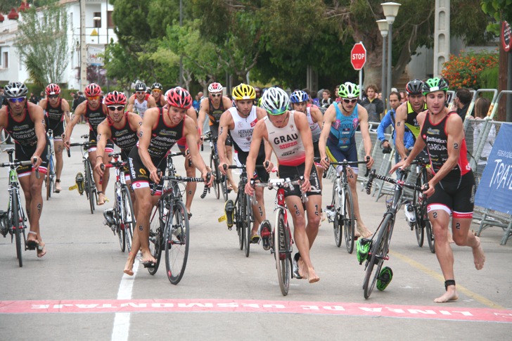 Tras esto, un grupo de unos quince triatletas ciclaba en cabeza en la última vuelta, grandes nombres internacionales y buenos corredores prometían un cinco mil final de vértigo. El grupo llega a la T2 y son Antonio Benito y Nan Oliveras los primeros en salir del box, ambos cogen unos segundos de margen con respecto a un estirado grupo que intenta perder el mínimo tiempo. Oliveras y Benito marcan un ritmo estratosférico en los dos primeros kilómetros, esto les permite abrir un hueco importante con sus perseguidores.