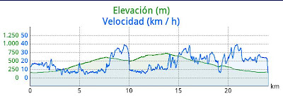 Os dejamos el mapa del recorrido y el gráfico de altimetrías de la vuelta (no hagais caso a nuestra velocidad, jejeje).