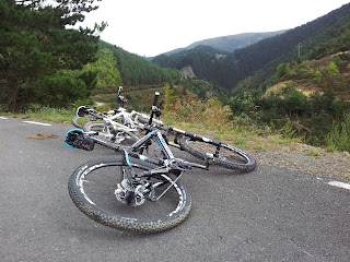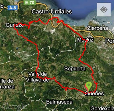 Ir con estos dos salvajes no es muy recomendable, en mala hora he quedado con ellos…jajajaja. Hasta Muskiz ha sido llevadero, pero luego…me he venido muy arriba subiendo a plato La Haya y ha venido “mesie masó” que diría alguno. Bajar plato, gotas de sudor que resbalan por la nariz, dudando si llamar a casa…me ha costado dar vuelta, y quedaba Saltacaballos!!! . El asfalto me rodeaba como mi sofá en la siesta. Como diría el viajero de Sopuerta, txini txano hasta coronar y divertida bajada a Castro.