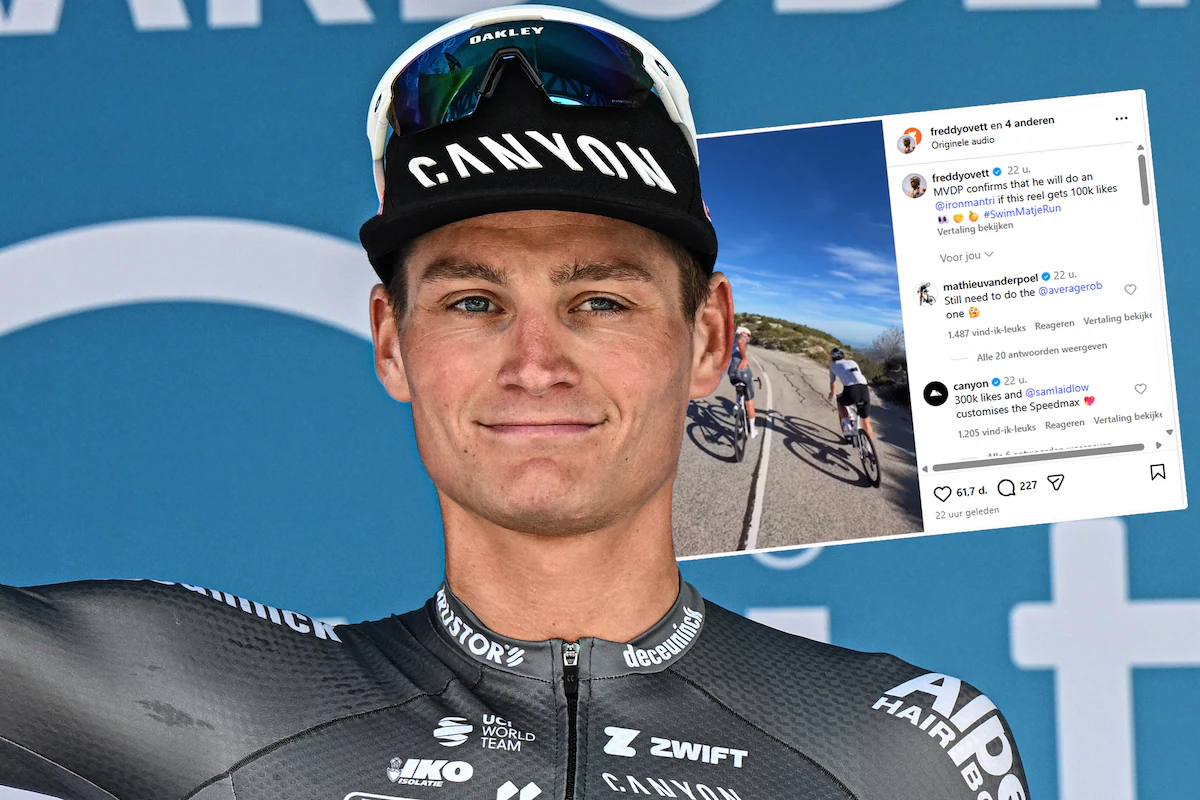 El origen de esta historia se encuentra en un podcast del popular youtuber belga Average Rob (Rob van Impe), quien reveló que Van der Poel había considerado seriamente competir en el Ironman 70.3 de Cascais. La conversación se viralizó rápidamente y terminó en un reto público en Instagram, impulsado por otro amigo del neerlandés, el ciclista y triatleta Freddy Ovett.