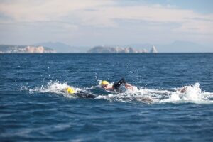 Alrededor de 700 inscritos en la primera edición de la Marnaton eDreams Barcelona. Jornada de pleno sol, con un mar que rondaba los 17ºC, con