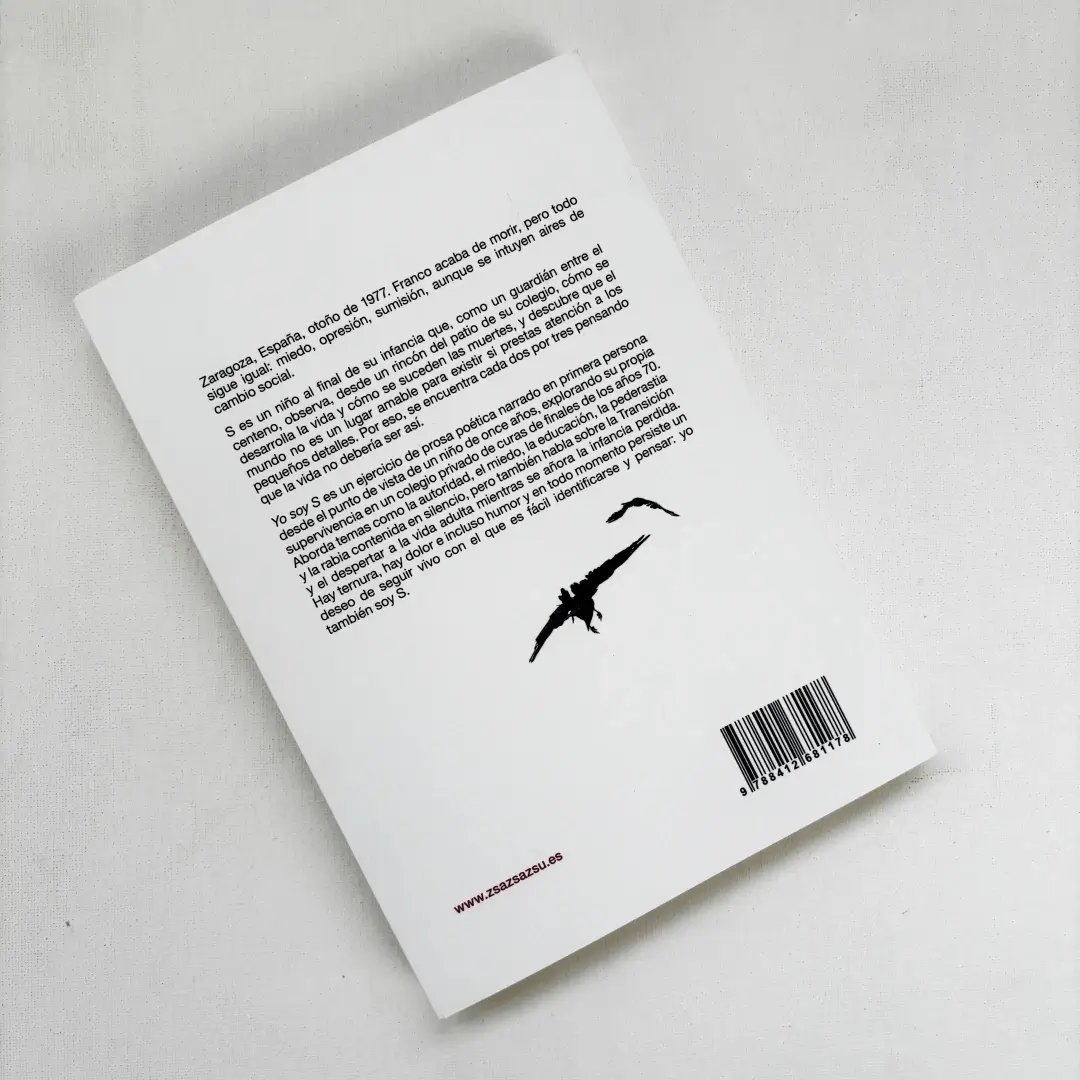 Yo soy S de Míchel Gracia es un ejercicio de prosa poética narrado en primera persona desde el punto de vista de un niño de once años, explorando su propia supervivencia en un colegio privado de curas de finales de los años 70. Aborda temas como la autoridad, el miedo, la educación, la pederastia y la rabia contenida en silencio, pero también habla sobre la Transición y el despertar a la vida adulta mientras se añora la infancia perdida. Hay ternura, hay dolor e incluso humor y en todo momento persiste un deseo de seguir vivo con el que es fácil identificarse y pensar: yo también soy S.
