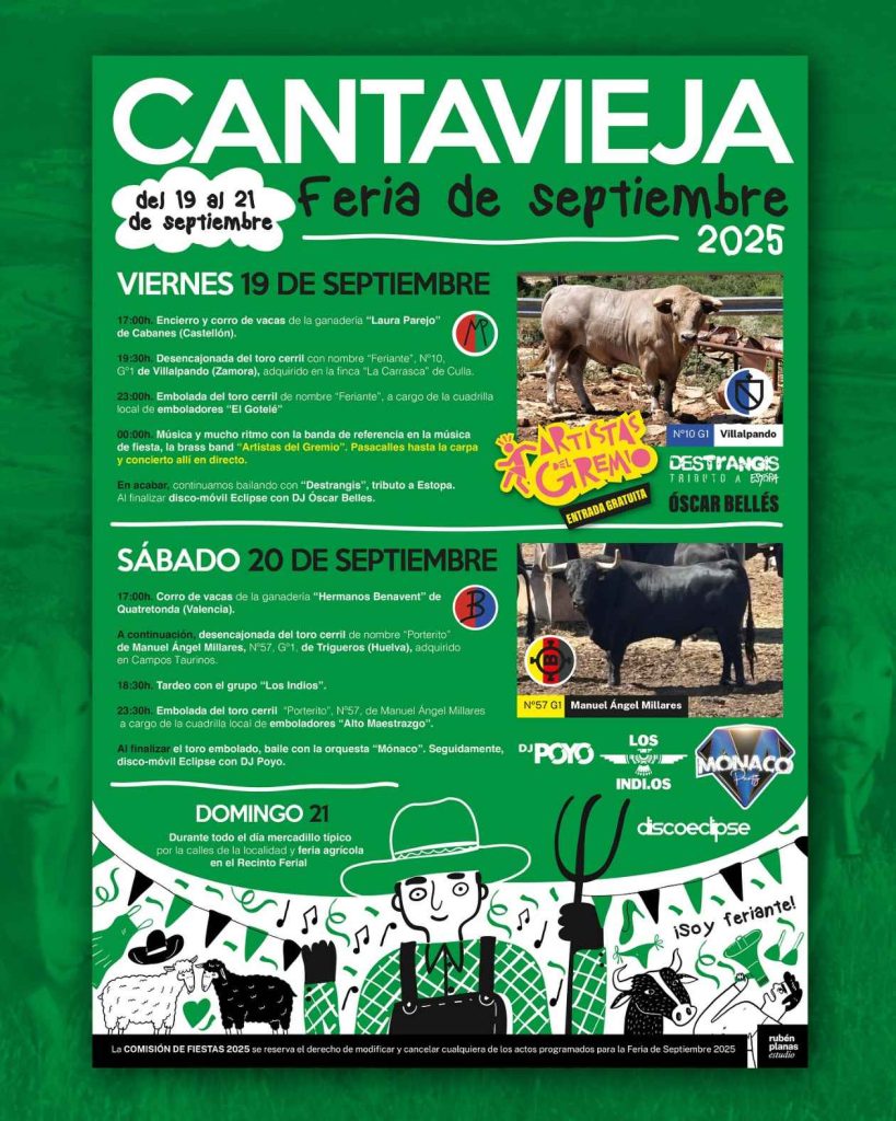 Aquí vas a conocer el programa completo de la Feria de Cantavieja de Septiembre 2025, que tendrá lugar los días 19 y 21 de septiembre.